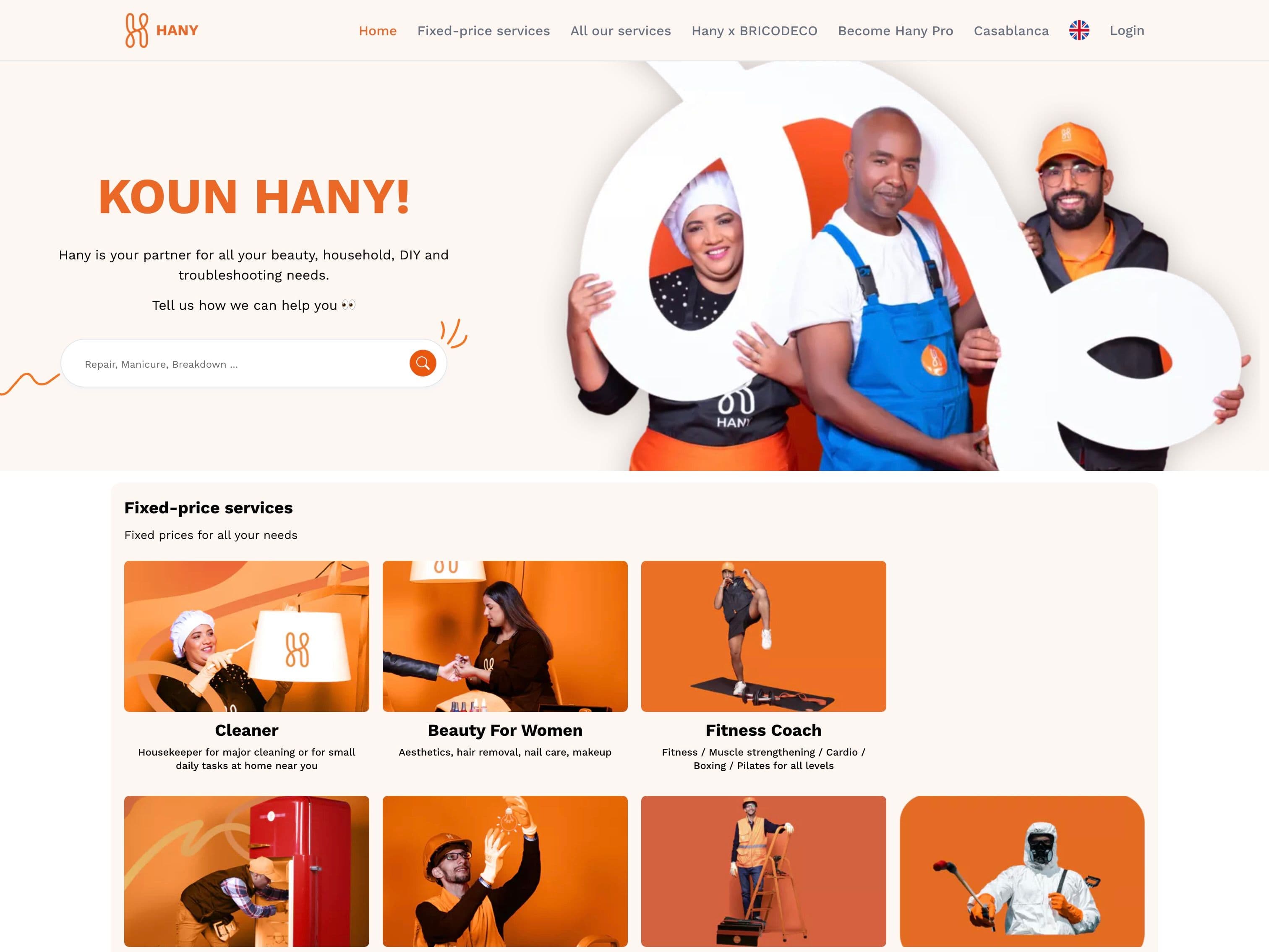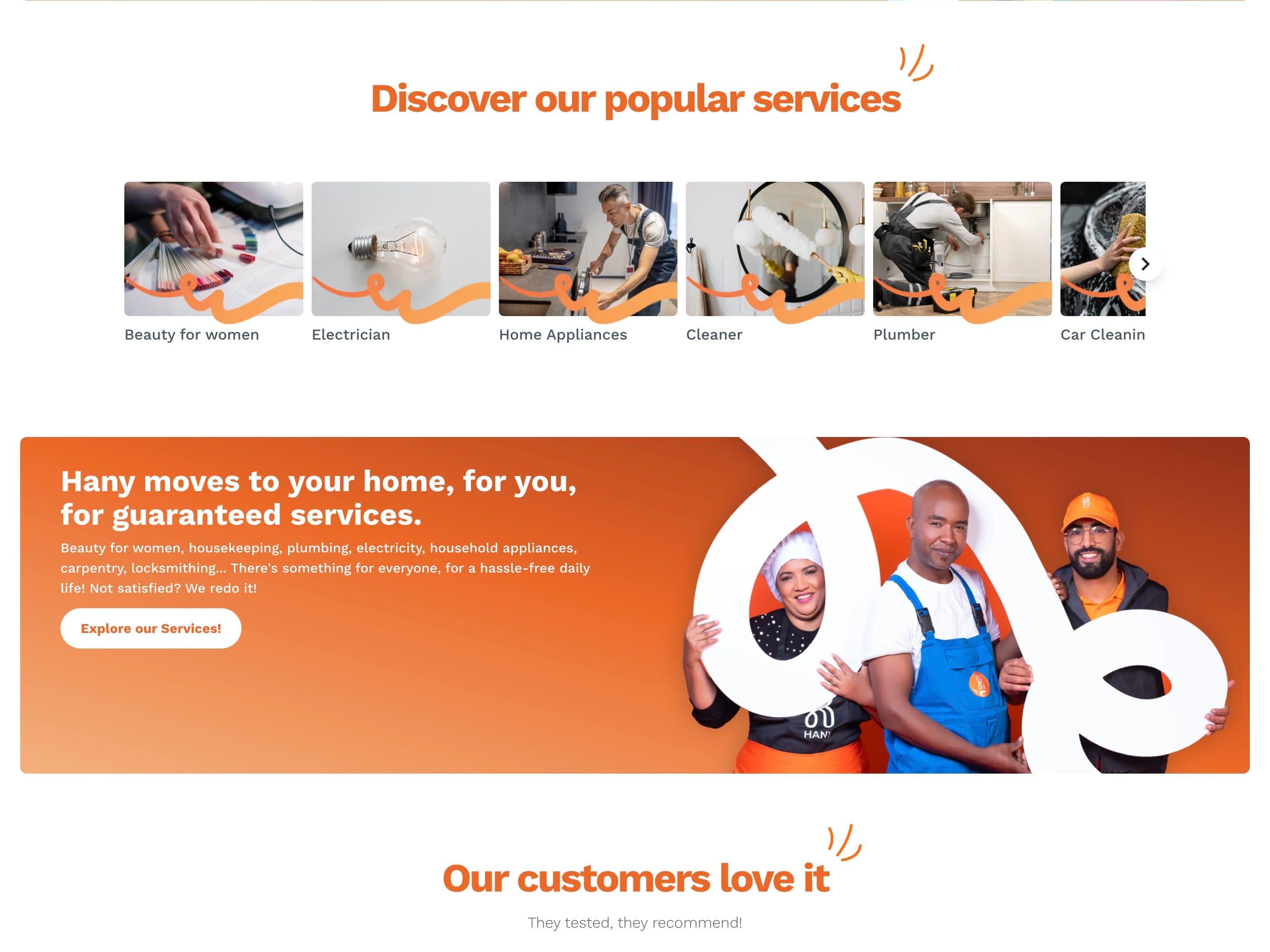 The Hany Web App is an extension of the original mobile platform, designed to offer the same home service booking capabilities but through a highly accessible and SEO-optimized web interface. This web version brings Hany's services to a wider audience, making it easier for users to book services like cleaning, plumbing, and self-care directly from their web browser.